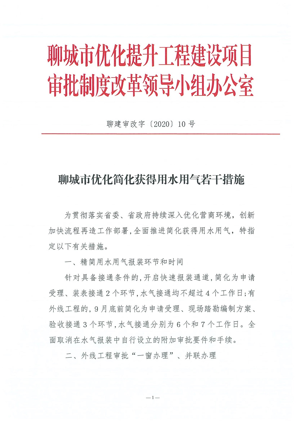 聊城市優(yōu)化簡化獲得用水用電若干措施(聊審改建字【2020】10號)