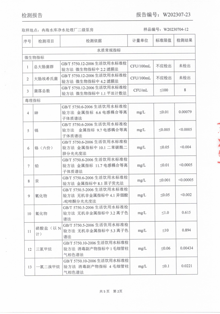 2023年7月鄉(xiāng)村水質(zhì)檢測(cè)報(bào)告