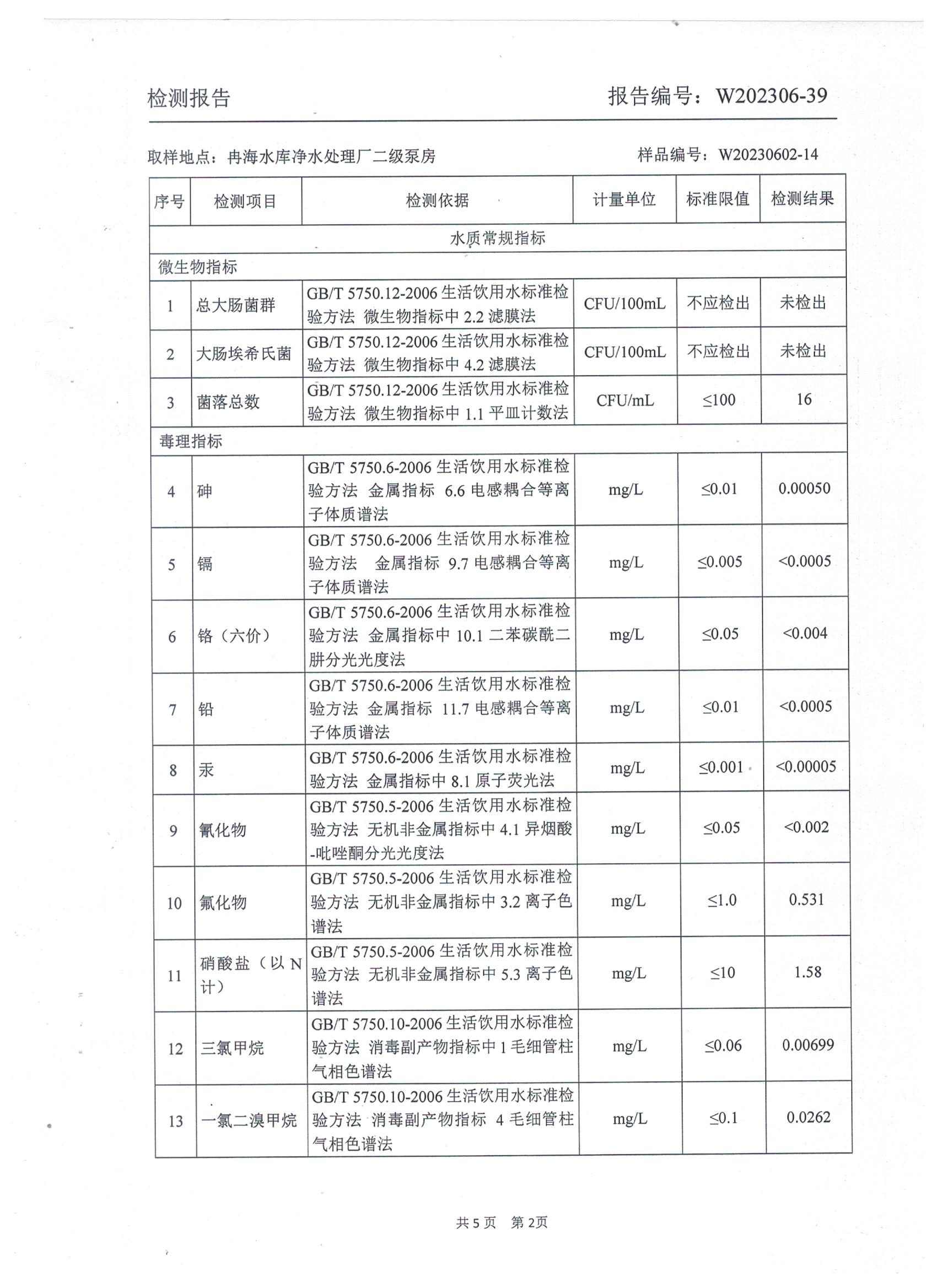 2023年6月鄉(xiāng)村水質(zhì)檢測(cè)報(bào)告