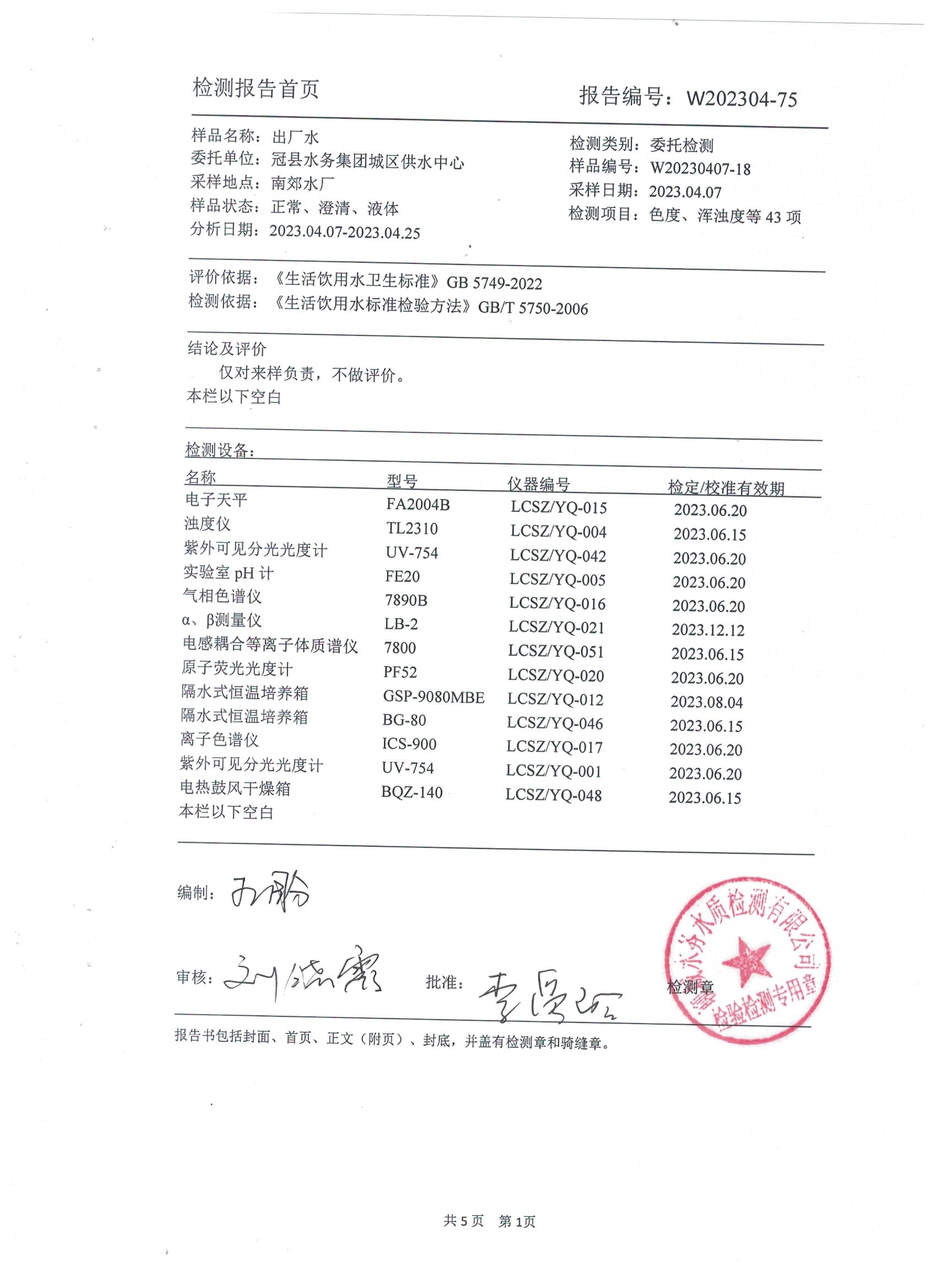 2023年4月城區(qū)水質(zhì)檢測報(bào)告