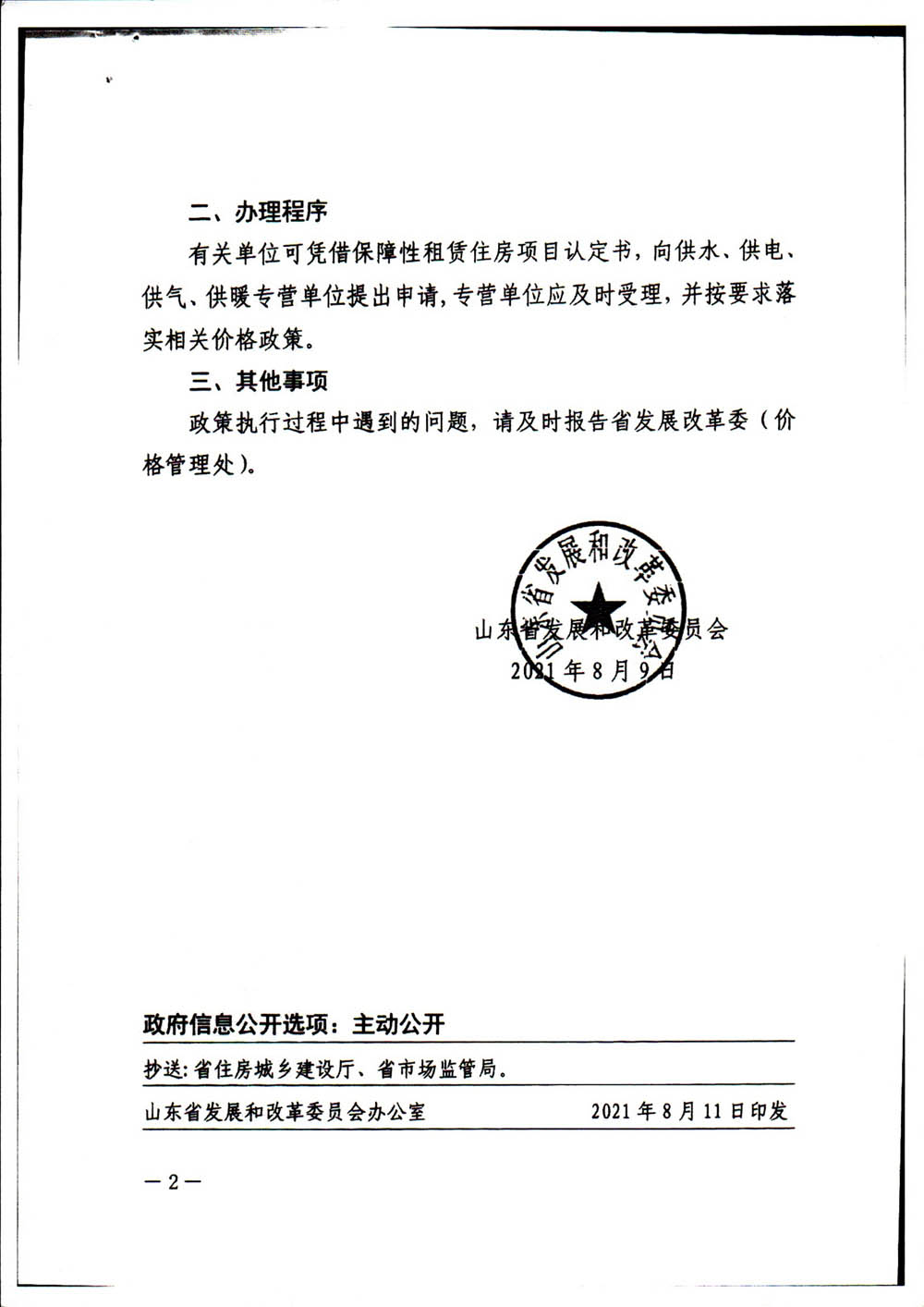 關(guān)于轉(zhuǎn)發(fā)《山東省發(fā)展和改革委員會關(guān)于保障性租賃住房項目水電氣暖